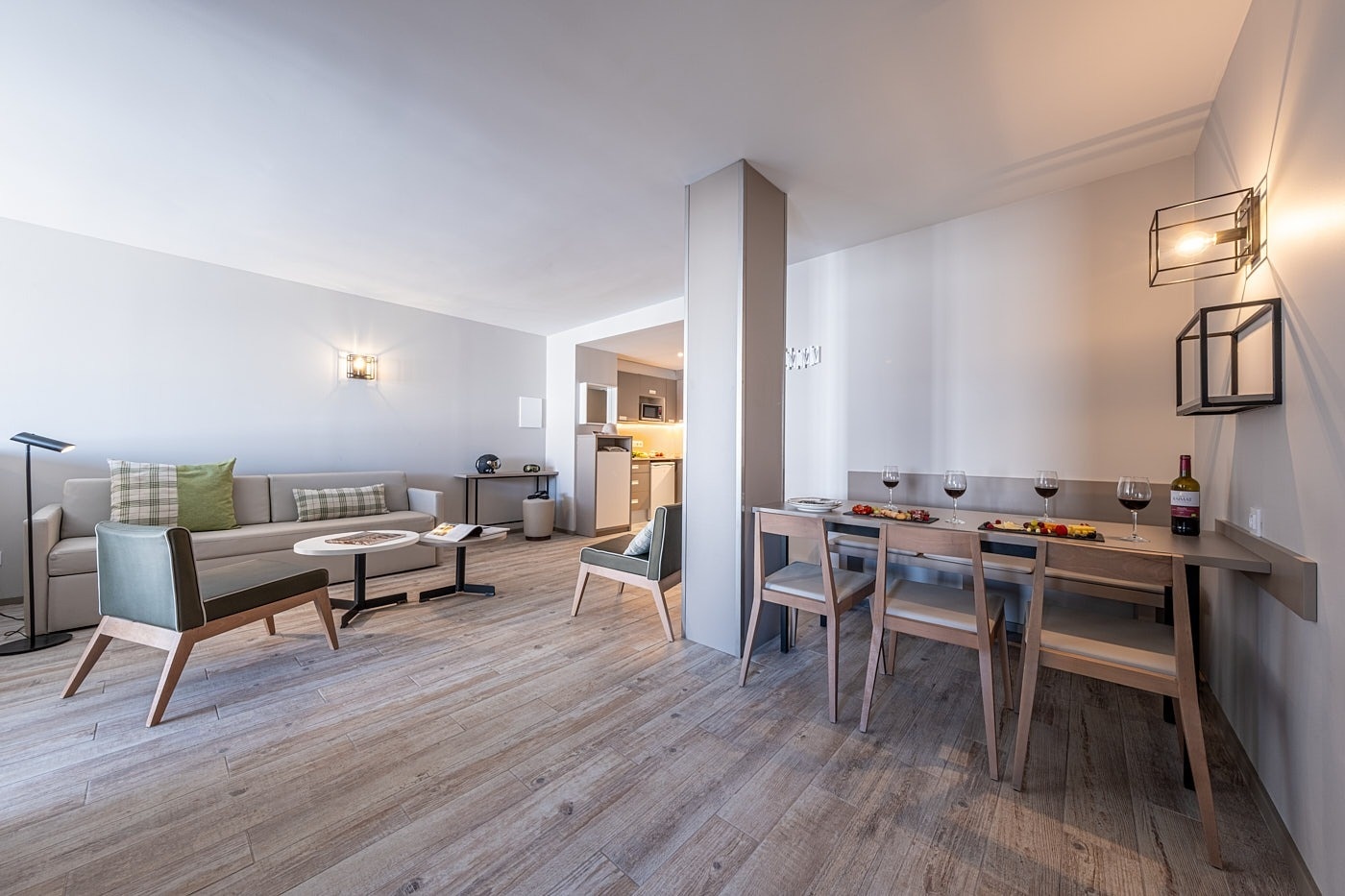 Los apartamentos, con capacidad de 2 a 5 personas, están cálidamente decorados y cuentan con baño propio, cocina equipada con microondas, nevera, utensilios de cocina y ropa de cama para una estancia cómoda y práctica.