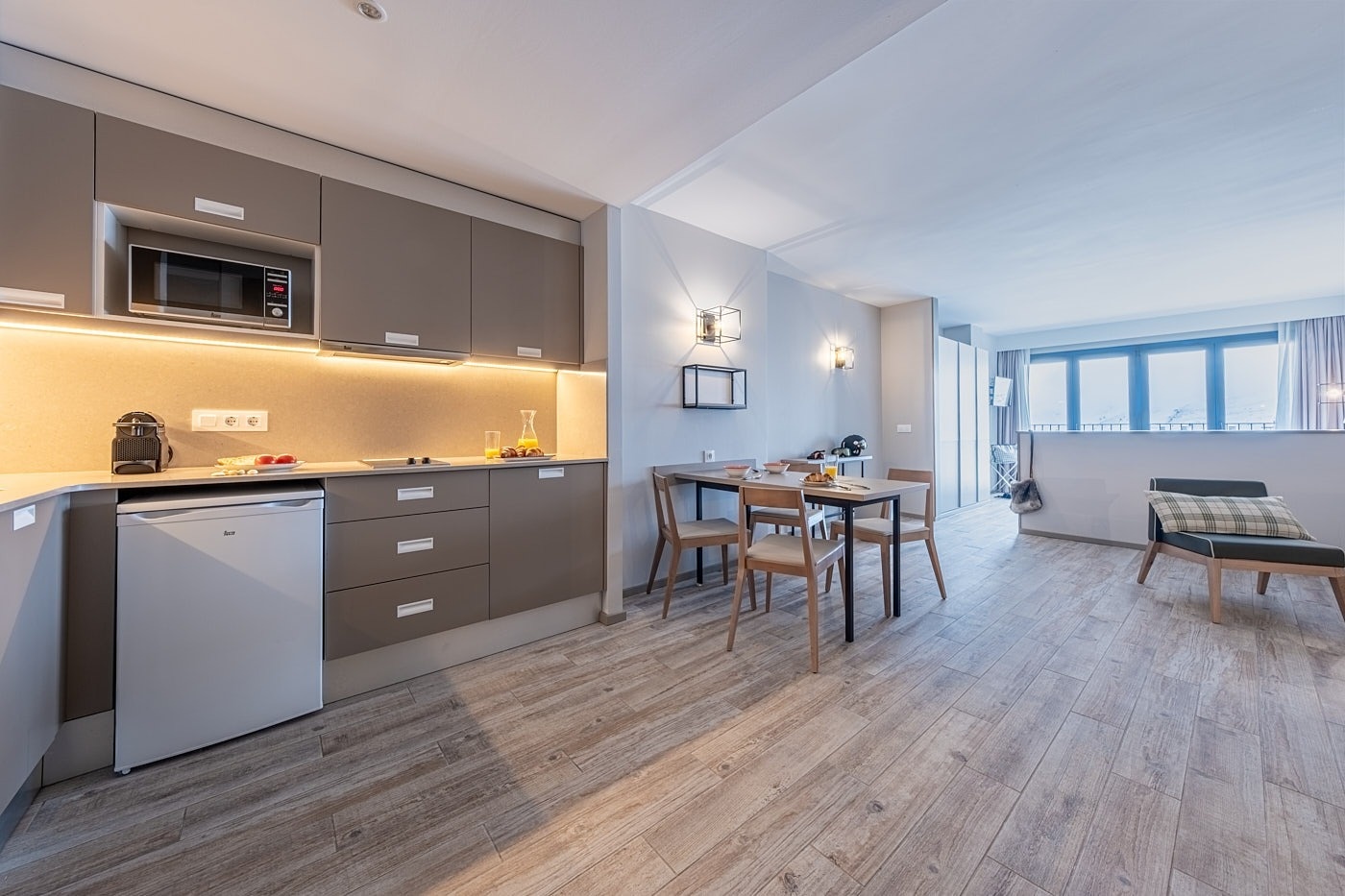 El edificio, totalmente remodelado en 2018, ofrece servicio de recepción 24 horas, parking propio de pago con plazas limitadas y cargadores para vehículos eléctricos, guardaesquís, servicio de alquiler de equipos, supermercado con todos los productos básicos para los huéspedes y conexión WiFi gratuita. Además, disponen de un bar donde podrás relajarte y disfrutar de un ambiente acogedor tras un día en la nieve.
