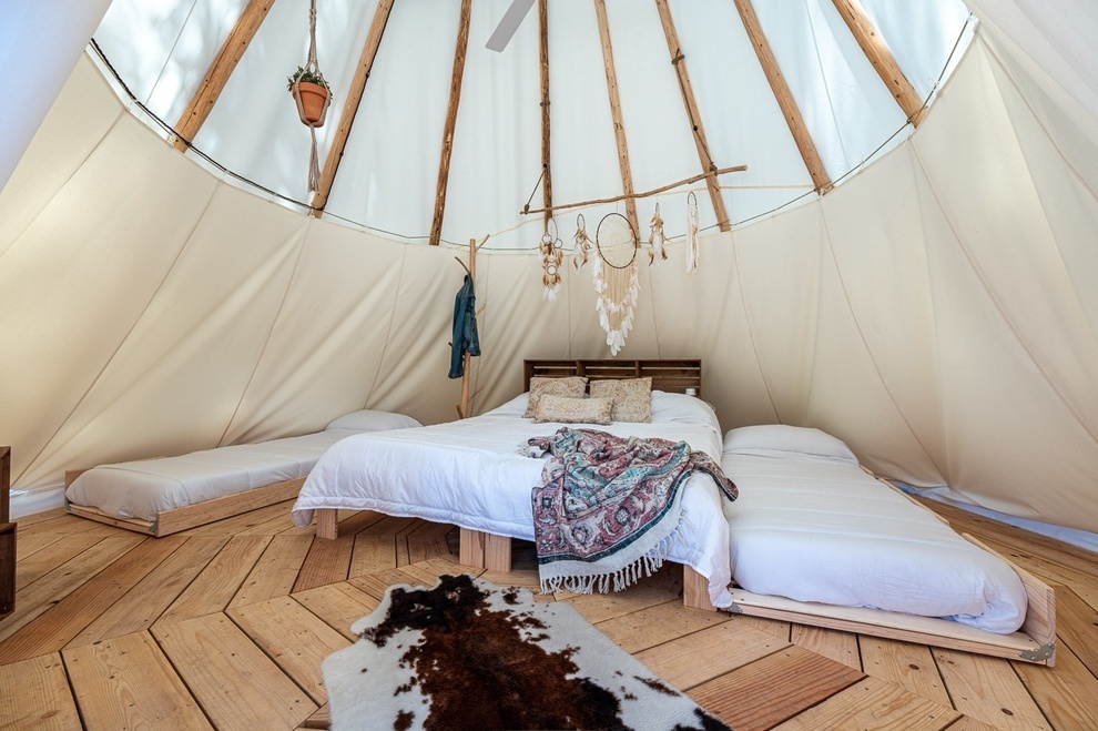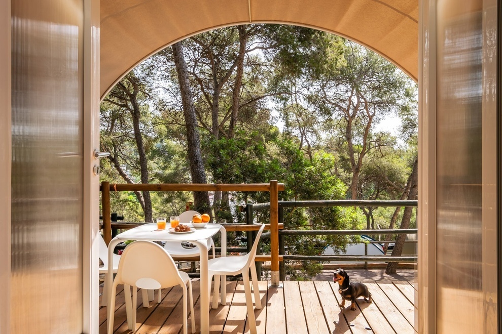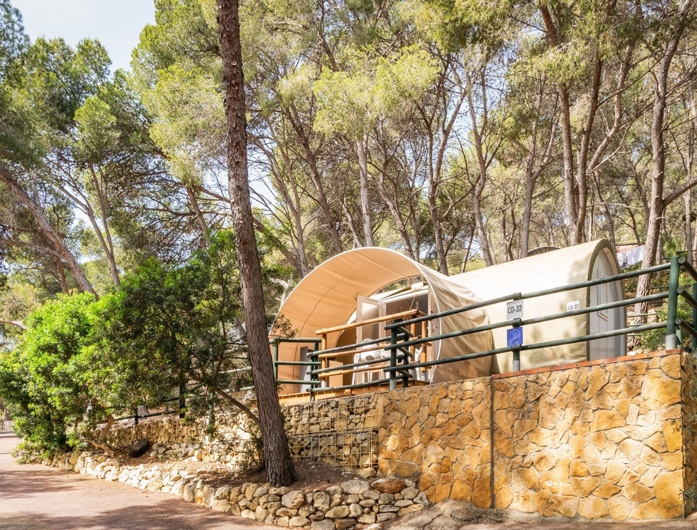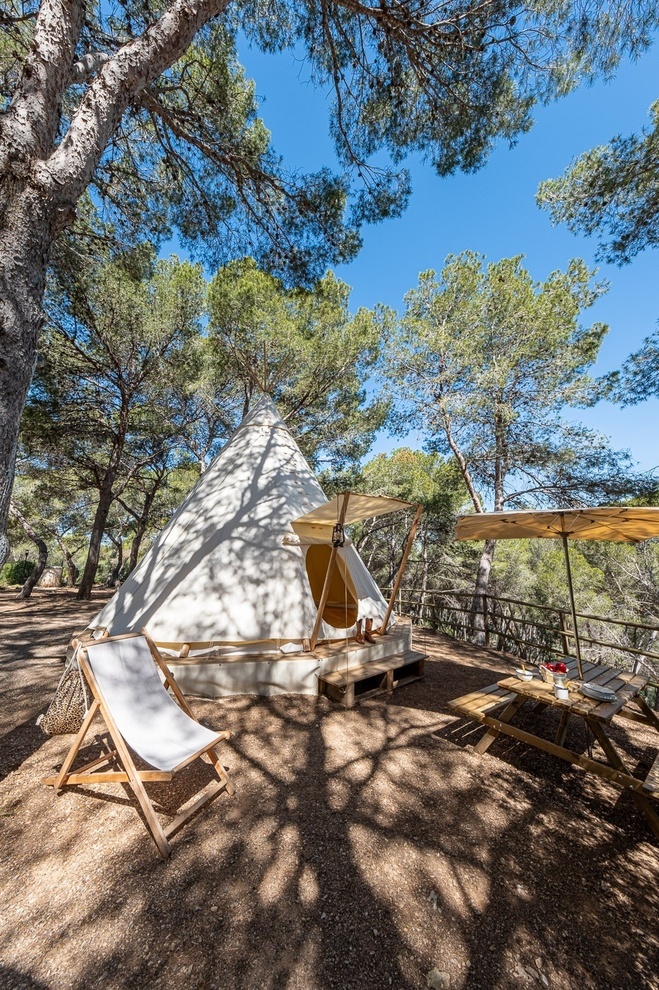 Situadas en la parte más alta del camping, junto al Bosc de la Marquesa, nuestras tiendas tipi de 5,50 metros de diámetro ofrecen una experiencia única rodeada de naturaleza. Con capacidad para hasta 4 personas (recomendado: 2 adultos y 2 niños), son ideales para familias que buscan una experiencia original y acogedora.