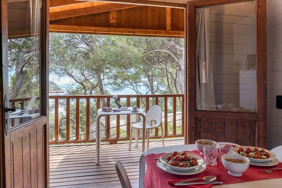 Situado en la zona media del camping (zona bosque), este bungalow con una superficie de 32 m², ofreciendo alojamiento para un máximo de 5 personas, incluyendo niños y bebés. Algunos de ellos disponen de vista al mar. Pueden darnos sus preferencias en la reserva e intentaremos hacer lo posible, pese a que no se garantiza.