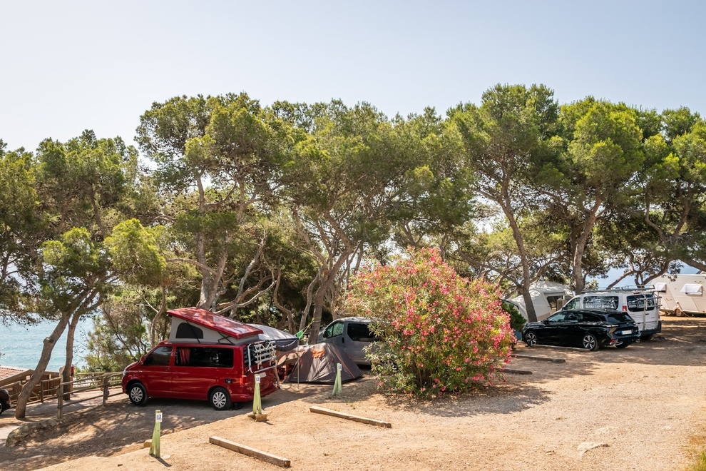 Estas parcelas se encuentran en la parte llana del camping, frente a la playa de la Mora. También se ubican en la zona del mirador de la Torre y alrededores, así como en la zona A (con vista al mar). La parcela la escogerán ustedes a su llegada en función de la disponibilidad de ese mismo día. En la zona numerada sólo se pueden instalar caravanas o autocaravanas (con baño completo y cocina). Aquí no es posible instalar ni tiendas, ni furgonetas, ni carro tienda. Todas las parcelas están delimitadas. Apta únicamente para caravanas y/o autocaravanas a partir de 6 metros de longitud.