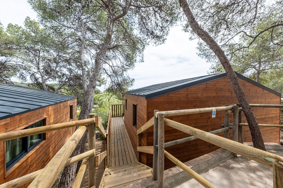 Ubicados en la parte más alta del camping, al lado del Bosc de la Marquesa. Este alojamiento de 20 m² y 12 m² de terraza, ofrece un espacio acogedor con capacidad para un máximo de 4 personas, incluyendo niños y bebés. La distribución consta de dos habitaciones: una habitación con cama de matrimonio y una habitación con una litera. La cocina está totalmente equipada para que puedas preparar tus comidas con facilidad.