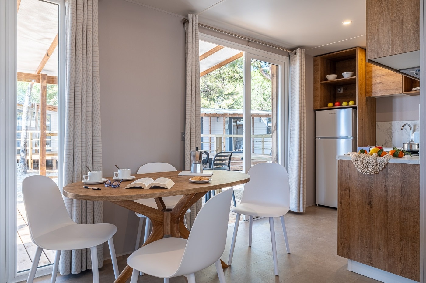 Mobilheim Marum (ehemals Mobilheim View). In bester Lage des Campingplatzes, direkt am Wellenbrecher im Bereich Torre de la Mora , bietet dieses 32 m² große Mobilheim für 5 Personen (Erwachsene, Kinder und Babys) ein einzigartiges Erlebnis mit unvergleichlichem Blick auf das Mittelmeer. Dank seiner Lage ist es die ideale Unterkunft für alle, die eine spektakuläre Umgebung mit maximalem Komfort genießen möchten.