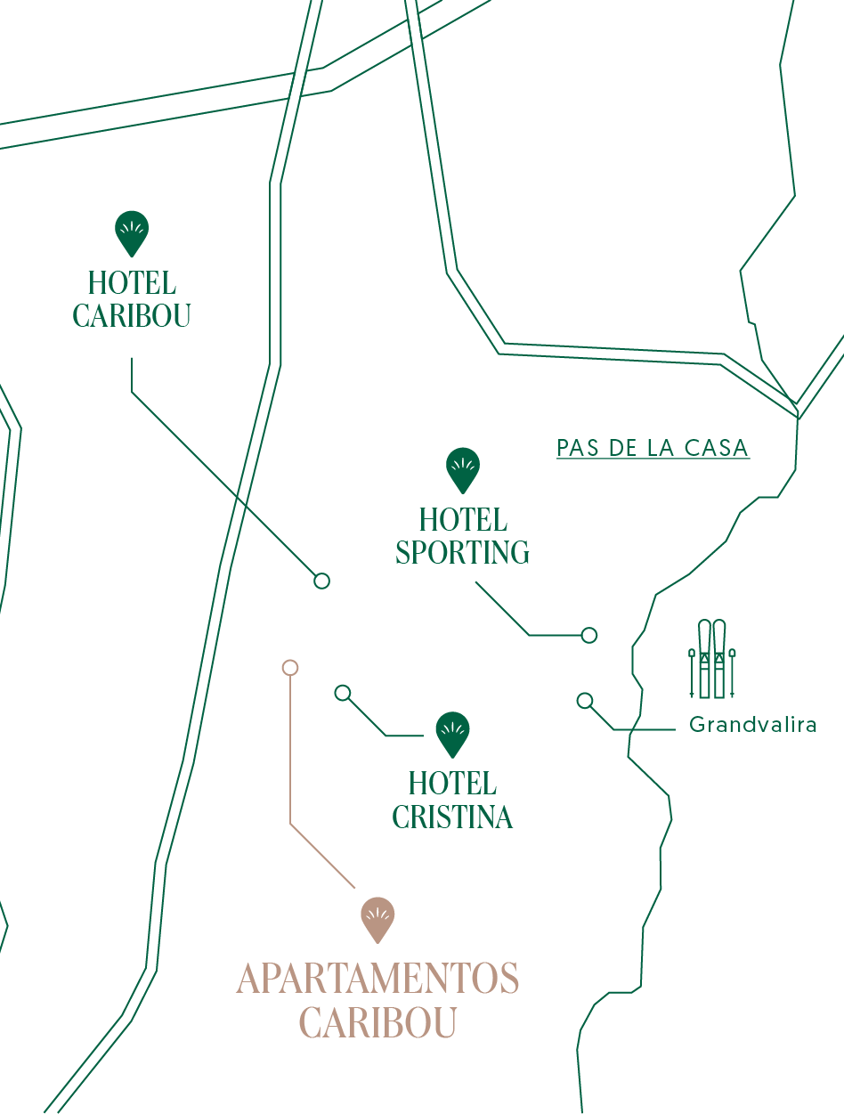 Caribou Apartments is an ideal establishment to enjoy skiing in Andorra. For those ski clients who prefer to stay in a hotel at the foot of the slopes and, furthermore, right in the center of a destination with a wide range of leisure activities, such as Pas de la Casa. This is the perfect option, as it is located just 5 minutes walk from the Grandvalira slopes.