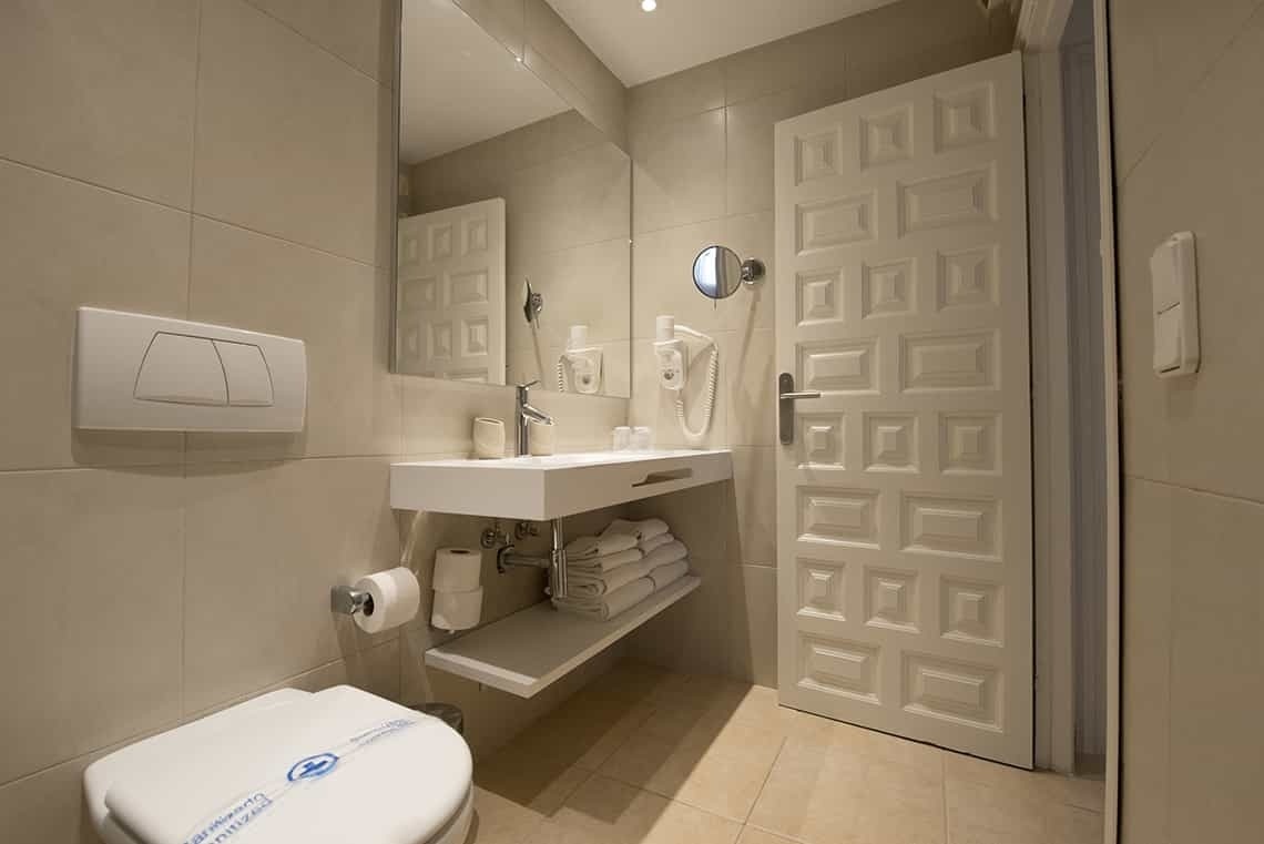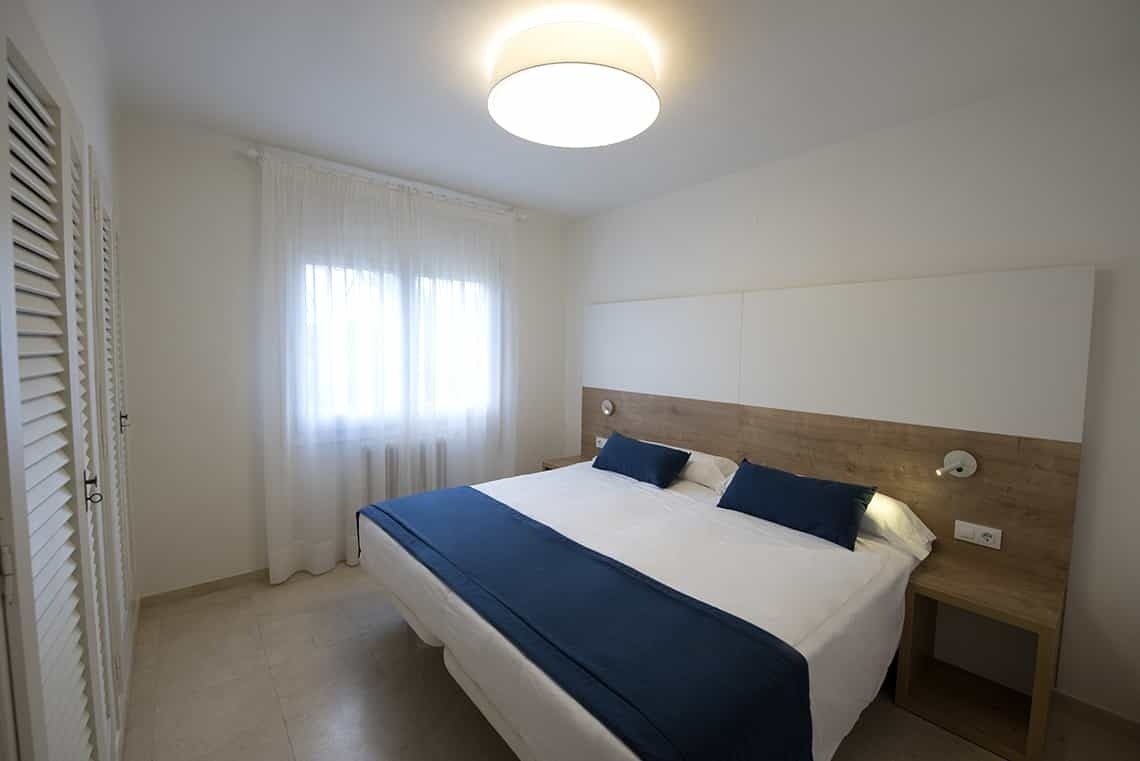 24 m² room with resort views. It has a double bed or 2 single beds and a full bathroom. All the comforts to guarantee a pleasant stay. In addition, we have 4 rooms adapted for users with reduced mobility, upon request and subject to availability. It is decorated with soft tones and contemporary style furniture.