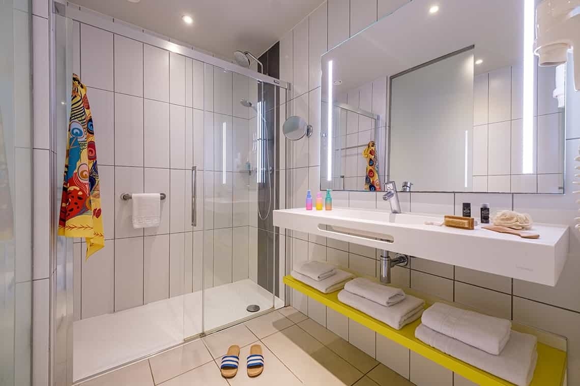 Room approximately 40 m² with views of the resort. It has a 2 meter x 2 meter bed, a sofa bed for two single seats. The room is equipped with a full bathroom and all the amenities to ensure a pleasant stay. This room stands out for its spaciousness and luminosity, it is decorated with soft tones and contemporary style furniture. We have adapted rooms upon request and subject to availability.