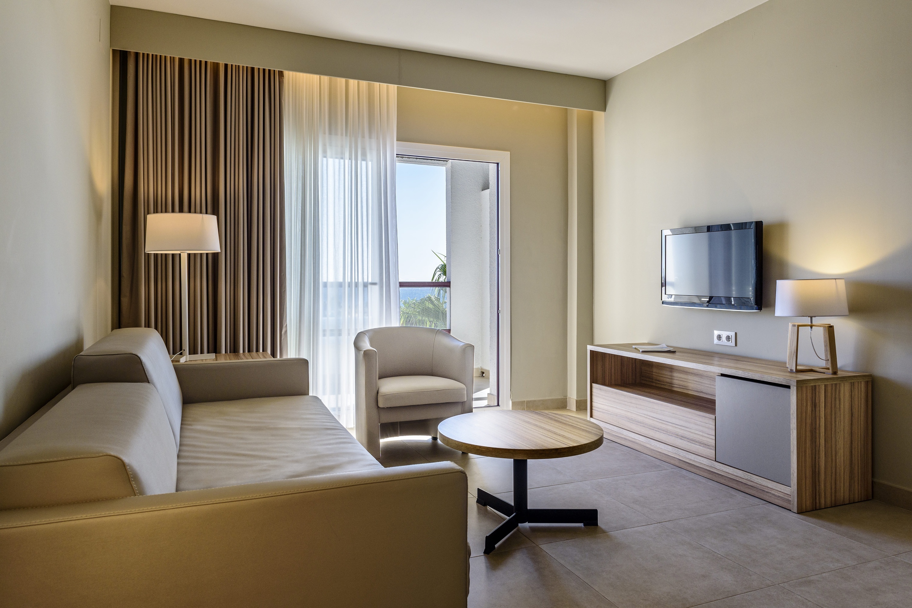 Habitación de 36.7 m² y una terraza amueblada de 5.85 m², cuenta con dos camas individuales y una sala de estar equipada con un sofá cama doble, además de un baño completo.