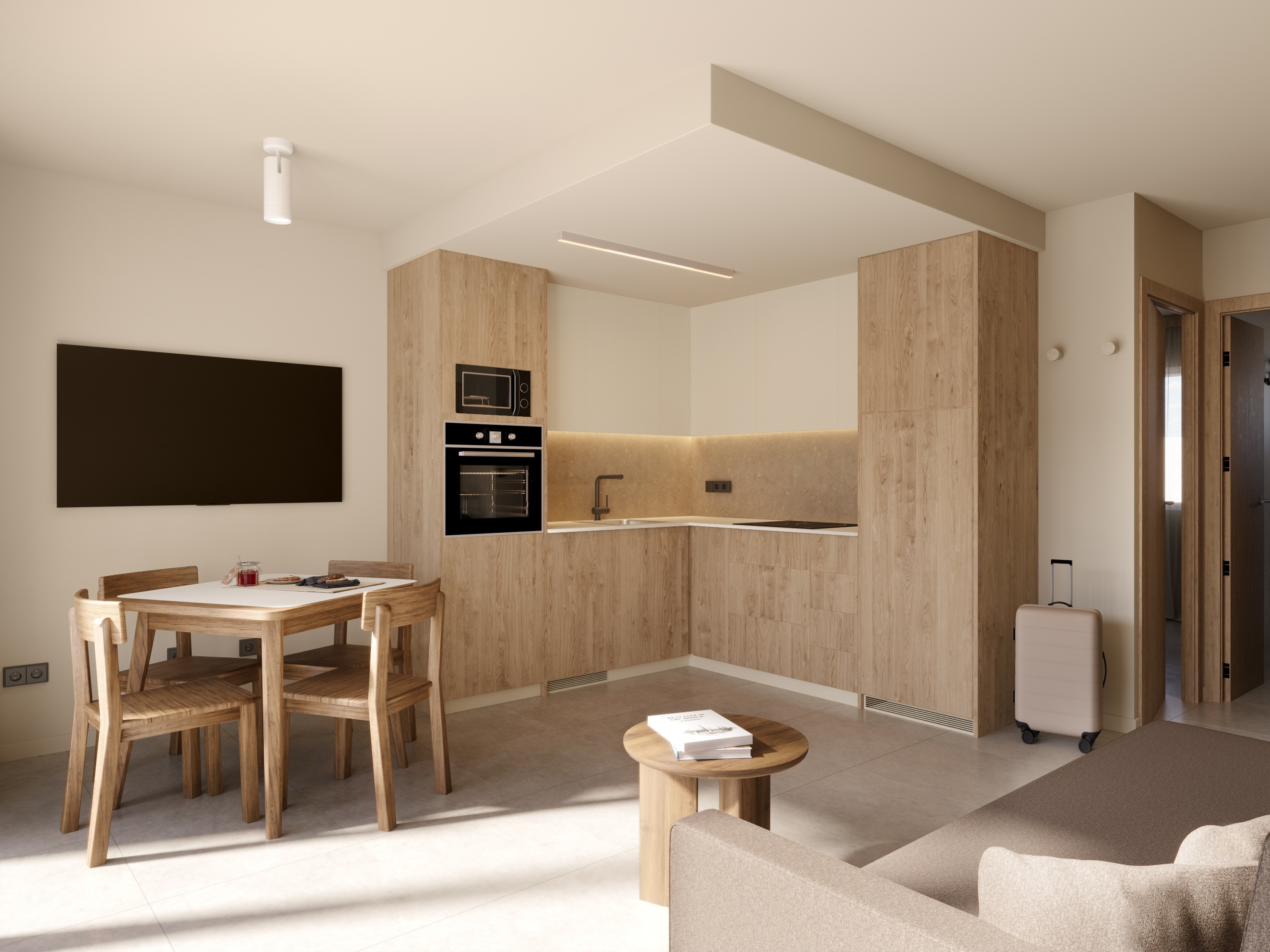 El Apartamento Master dispone de dos dormitorios independientes: uno con cama de matrimonio y otro con dos camas individuales, ofreciendo privacidad y descanso para todos. Además, el sofá cama del salón amplía la capacidad sin perder comodidad.