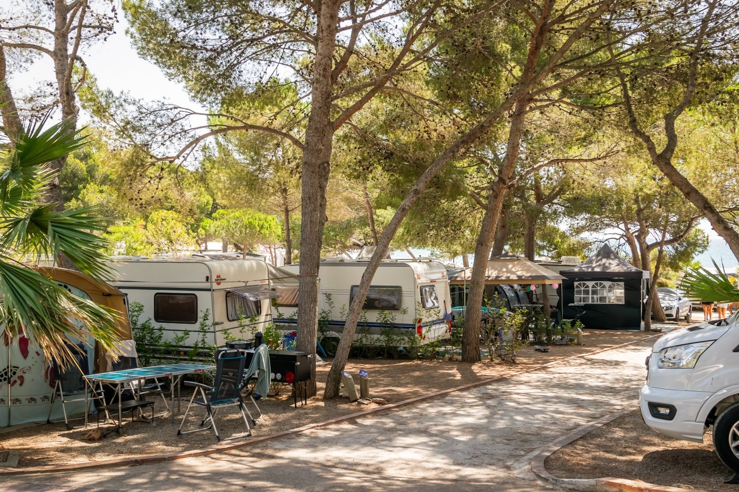 Ces emplacements sont situés sur la partie plate du camping, face à la plage de La Mora. Ils sont également situés au point de vue de Torre et dans ses environs, ainsi qu'en zone A (avec vue sur la mer). Vous choisirez votre emplacement à votre arrivée, en fonction des disponibilités du jour. Seuls les caravanes et camping-cars (avec sanitaires et cuisine) peuvent être installés sur la zone numérotée. Les tentes, fourgons et caravanes ne sont pas autorisés. Tous les emplacements sont délimités. Ils sont réservés aux caravanes et/ou camping-cars de 6 mètres de long ou plus.